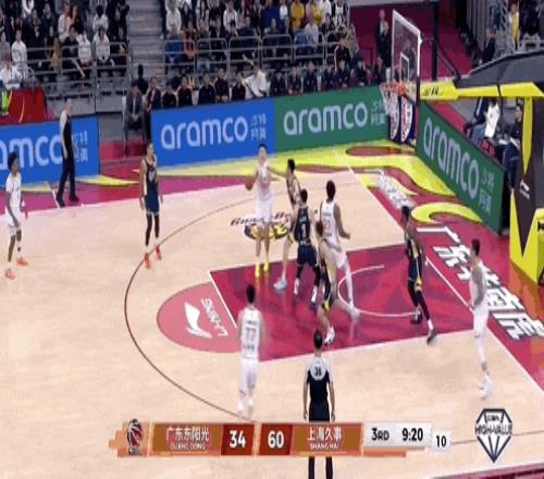 洛夫顿追身三分,分差达到50分。后面发生的事情,简单来说就是,上海队队员轮流进三分球......进完你的,进你的,进完你的,进你的......